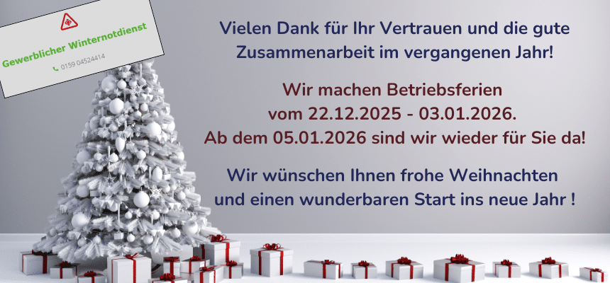 Bitte beachten Sie: Vom 22.12.2025 bis einschließlich 03.01.2026 bleibt unser Betrieb geschlossen. Ab dem 05.01.2026 sind wir wieder wie gewohnt für Sie da.
